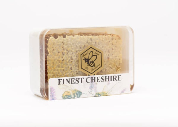 Finest Cheshire Honeycomb Sections are cut down sections from full frames that come from my Bee Hives in Cheshire. Each frame is carefully selected for its Aesthetic Appearance & Taste. Each section is different in thickness, colour & weight. However each section has an approximate average weight of 8 ounces / 227 grams.